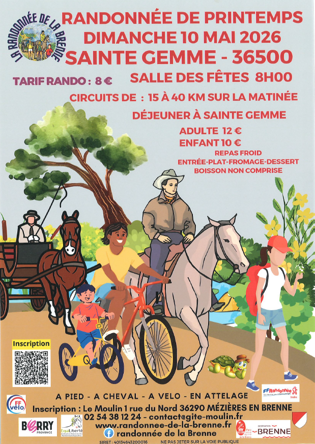 La 43e Randonnée de Printemps de la Brenne, se déroulera le dimanche 10 mai 2026 à Sainte-Gemme.